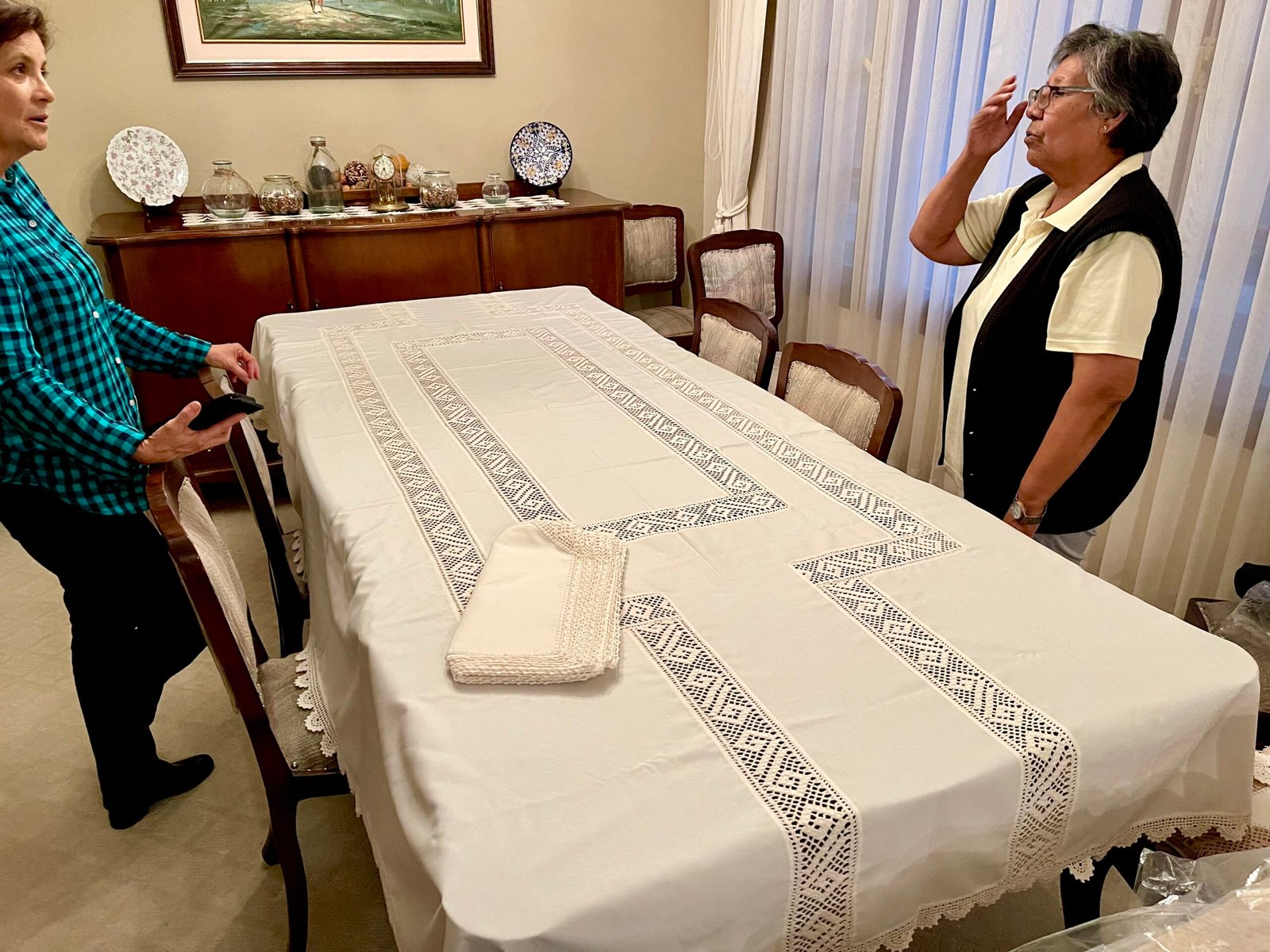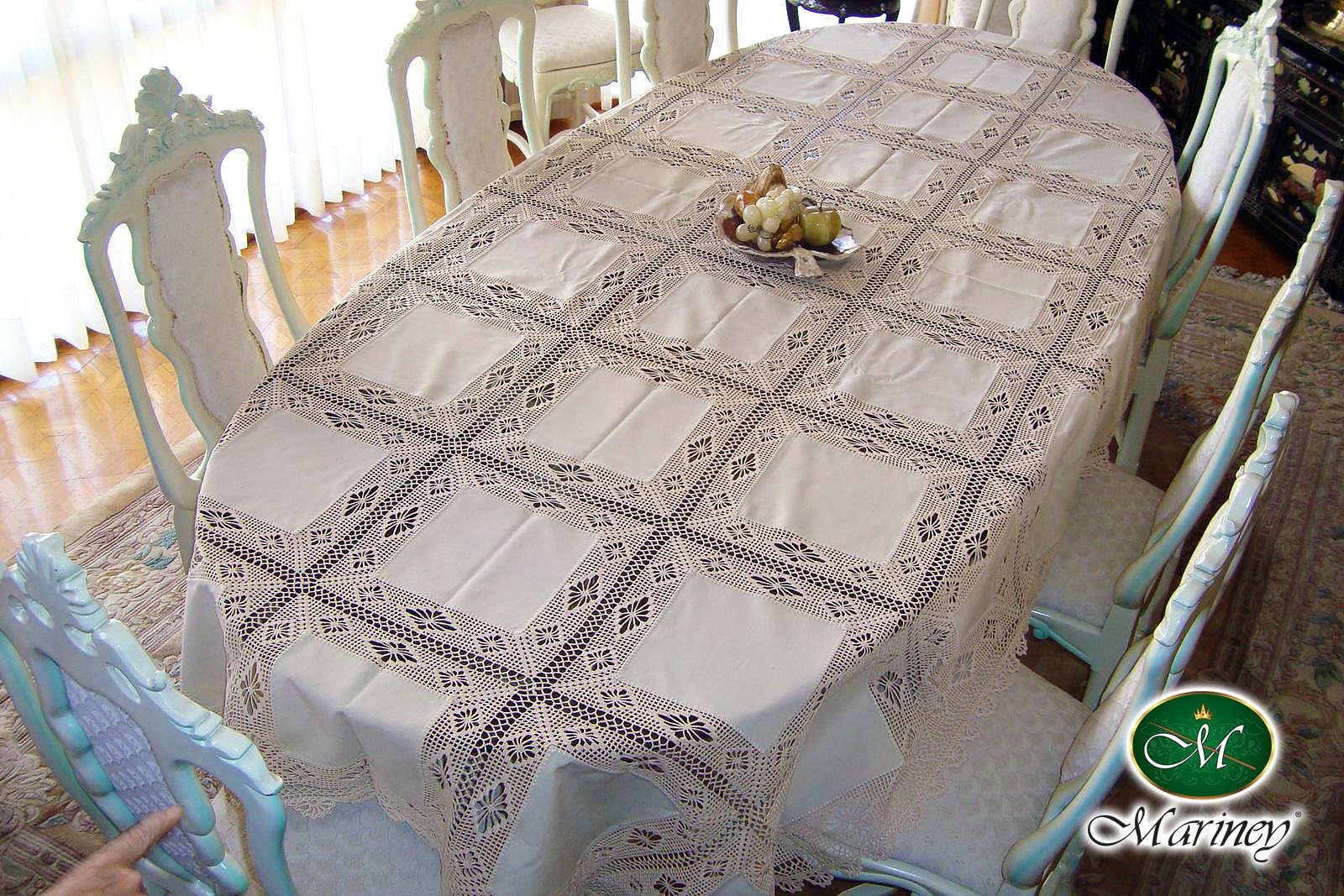 El proceso es laborioso y puede tomar semanas o incluso meses para completar una sola pieza. Los artesanos utilizan una aguja de crochet y un hilo para crear una serie de puntadas interconectadas que van formando delicadas figuras y patrones. Durante este tiempo, se realizan múltiples revisiones para asegurar que cada mantel cumpla con los estándares de calidad que caracterizan a Mariney. Este enfoque artesanal no solo garantiza acabados exquisitos sino también la longevidad de los manteles, que pueden ser heredados de generación en generación sin perder su esplendor.